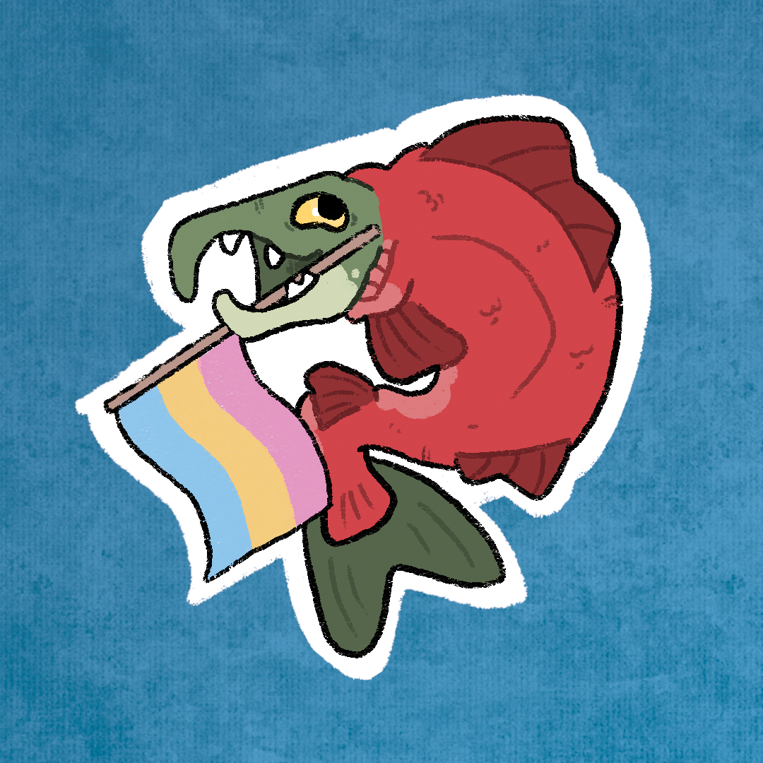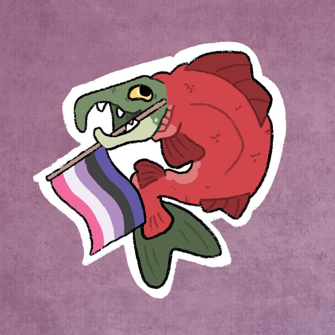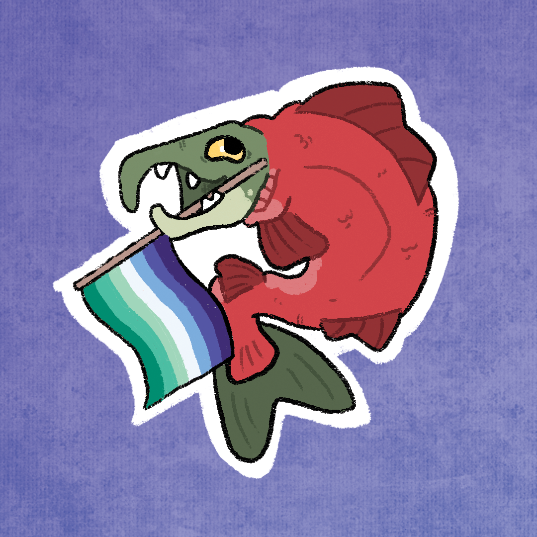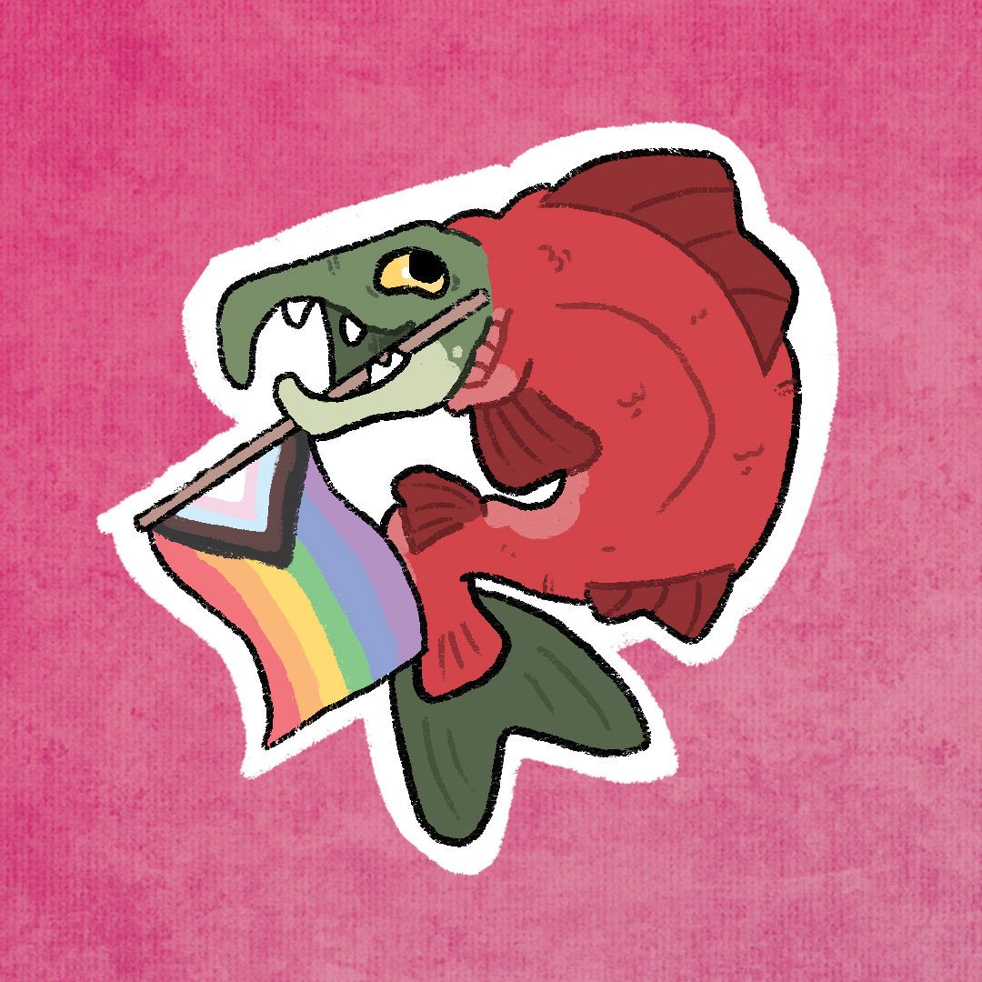 A bunch of sockeye salmon holding pride flags! Approx. 7x4cm
