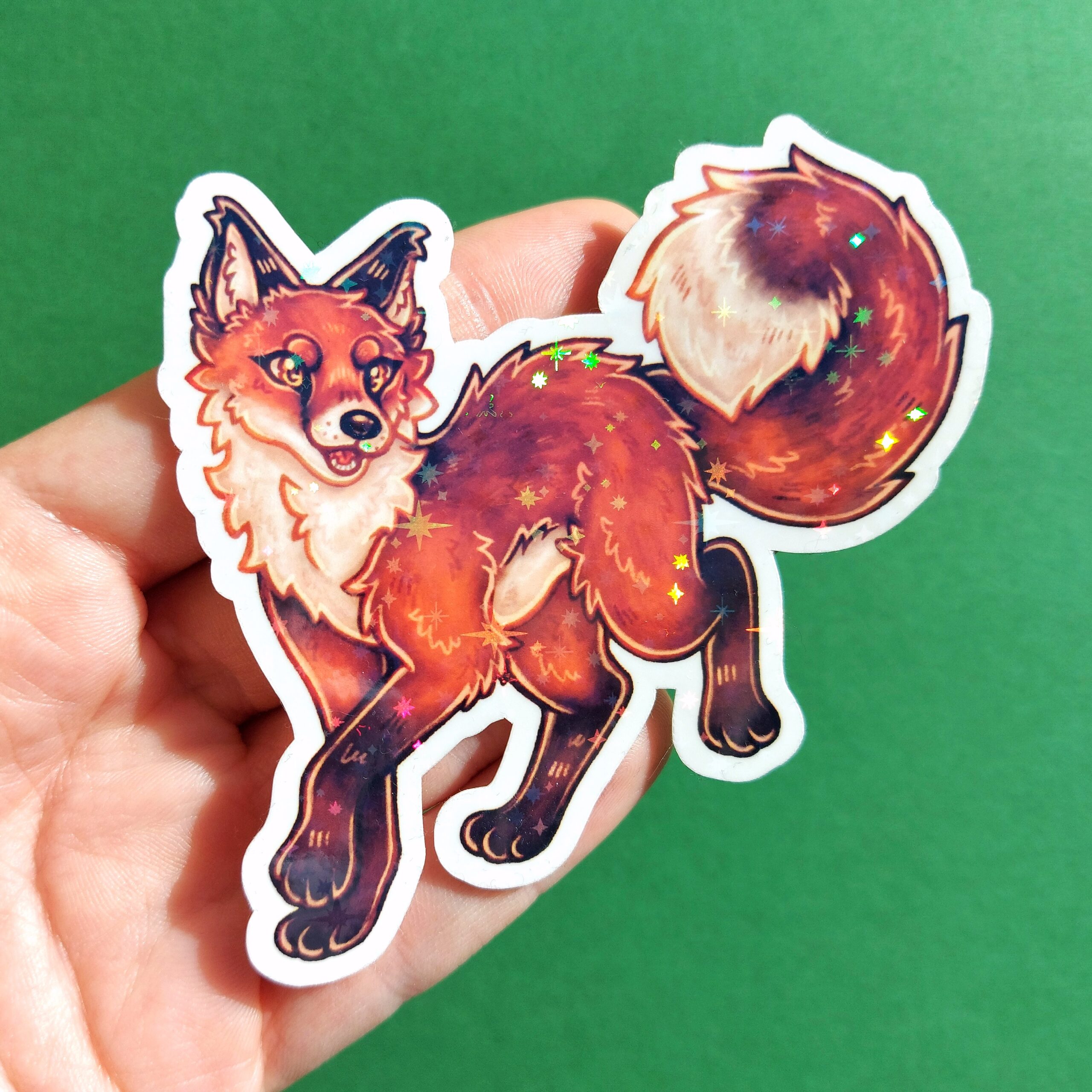 ✿ A wonderfully sparkly vinyl sticker of a cheeky Red Fox!