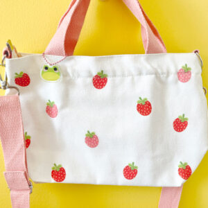 - Embroidered cat on the white side, red mushroom on the khaki side