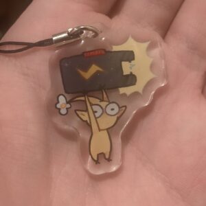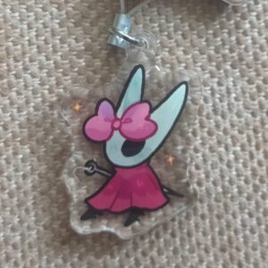 Small, clear double-sided Little Nightmares acrylic phone charm. Equipped with a white loop attachment.