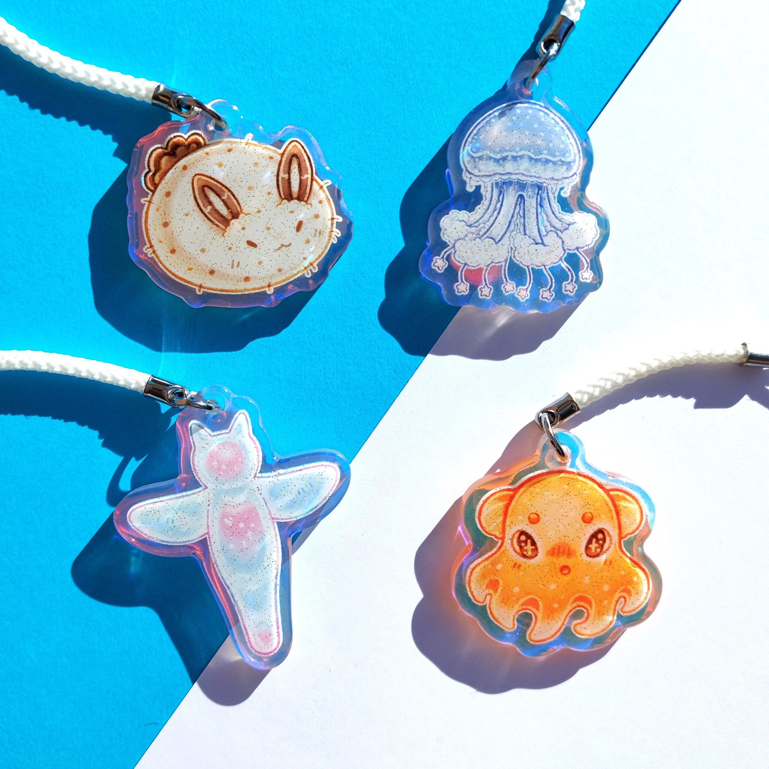 ✿ This acrylic phone charm collection features 4 small sea creatures from around the world: