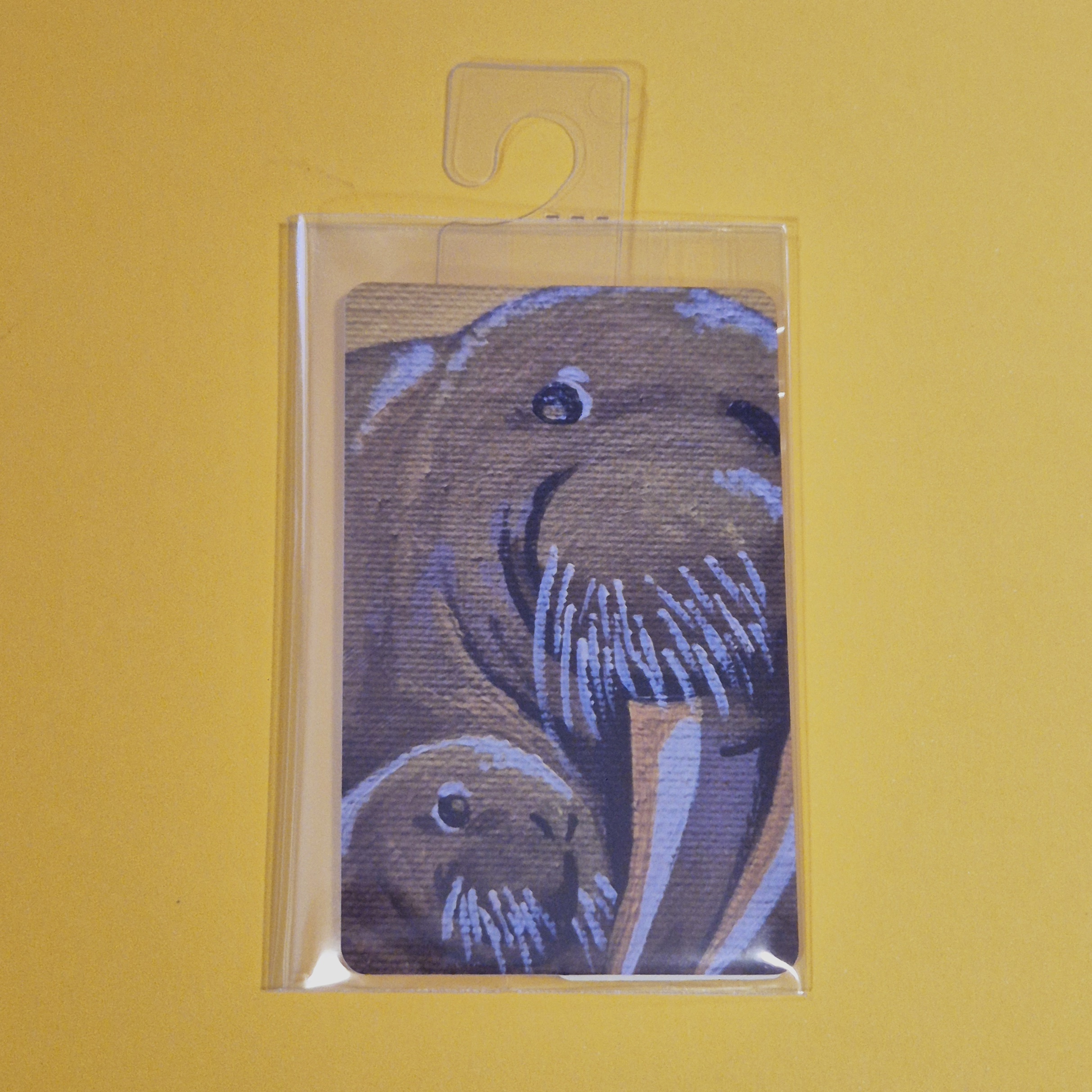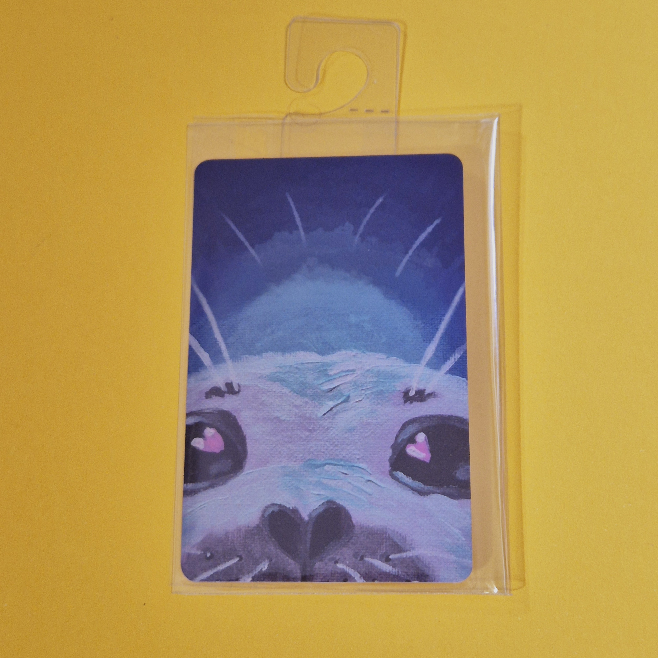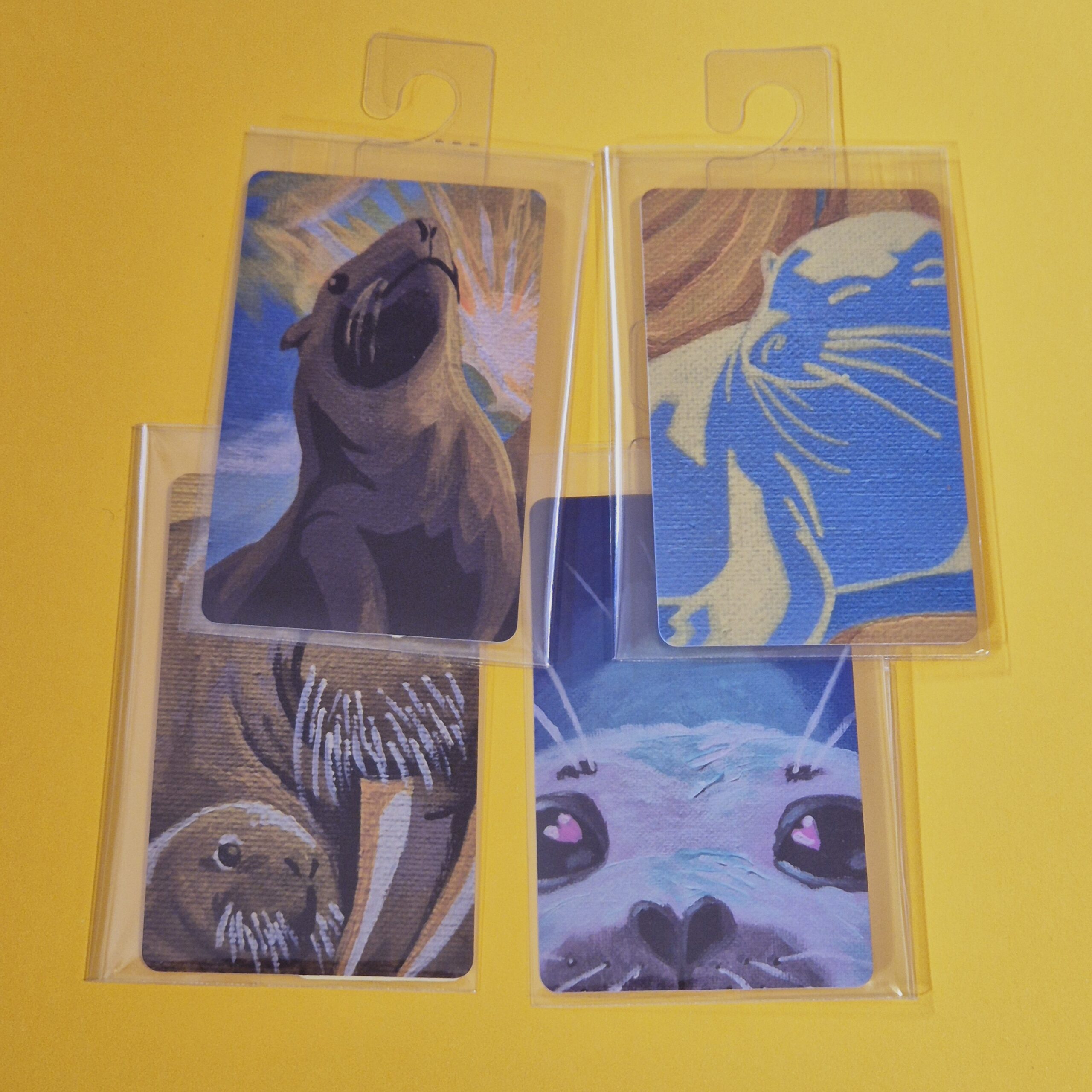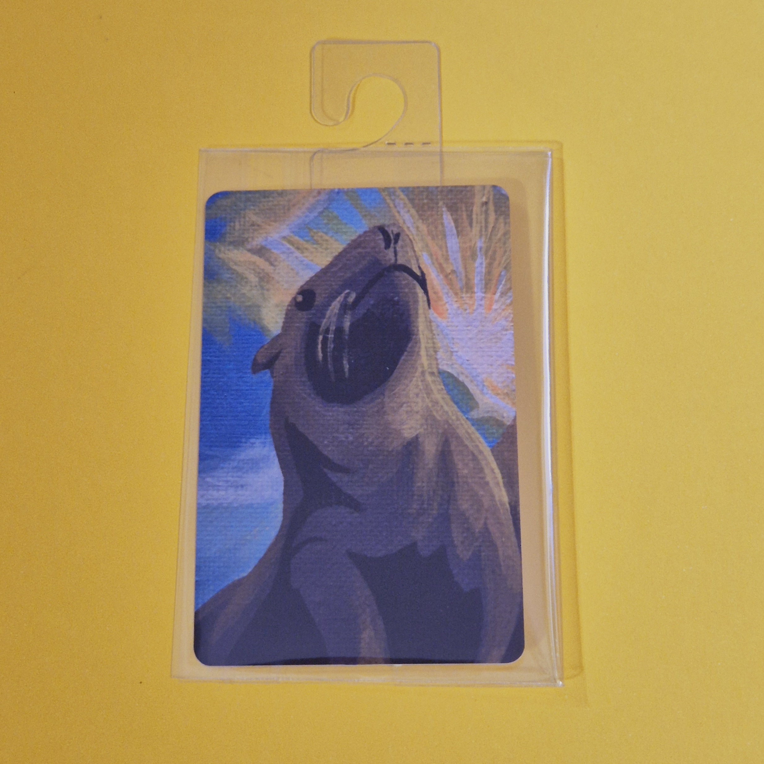 Sweet seal paintings, now in easily portable photocard form! They also have fun facts on the back. Currently featuring: Harp seal, Kekeno (Nz fur seal), California sea lion, Walrus