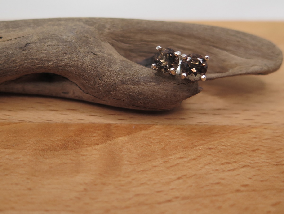 STERLING SILVER 4 CLAW DOUBLE BASKET SET 5MM SMOKY QUARTZ STUDS.