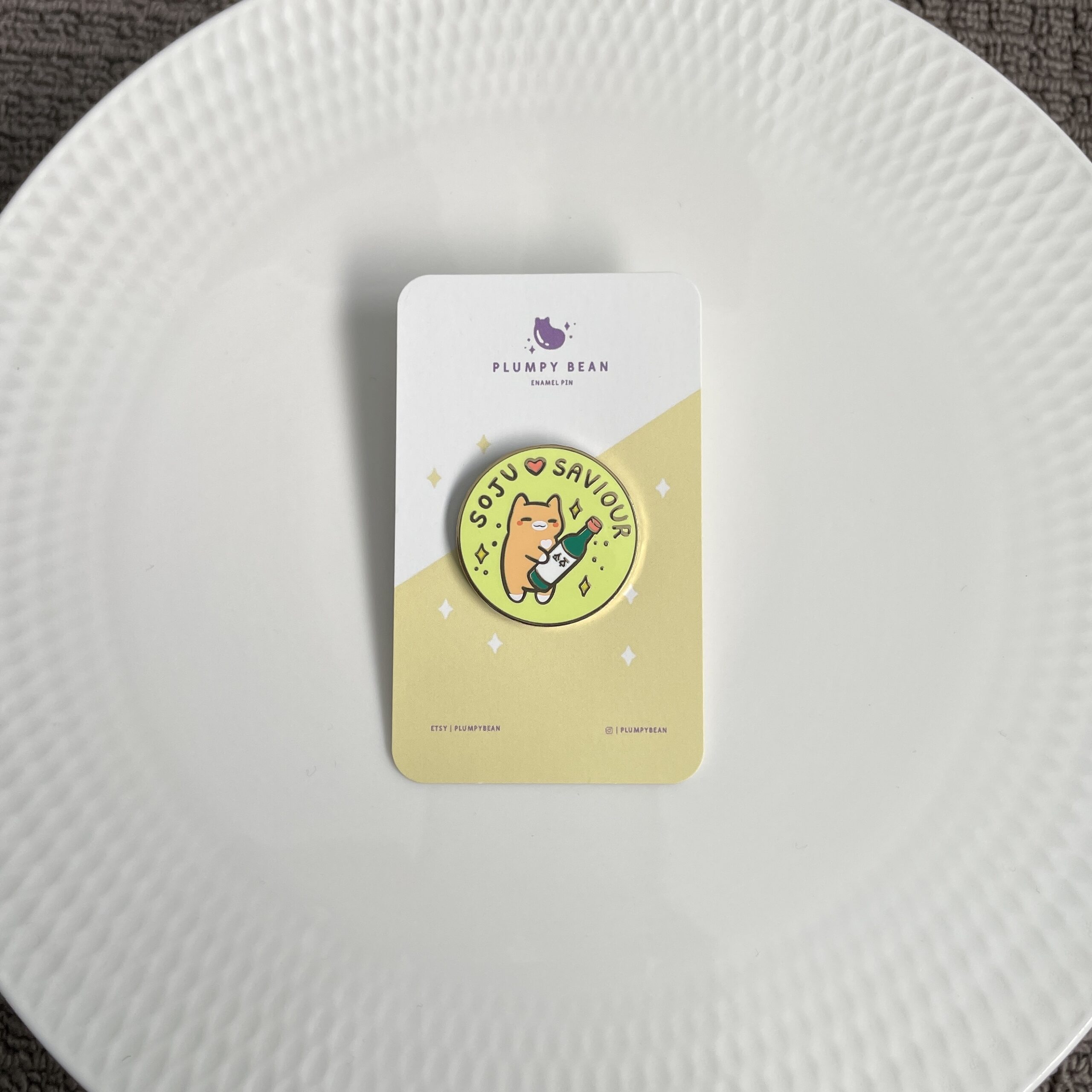 Raise your glass, Soju Saviour has arrived! This enamel pin is made for the life of the party — featuring a playful design that celebrates your love for Korea’s favourite spirit. Whether you’re pouring shots or just vibing with friends, this pin adds a splash of fun to your jacket, bag, backpack, hat, or pin board. Perfect for soju lovers who know how to keep the good times flowing!
