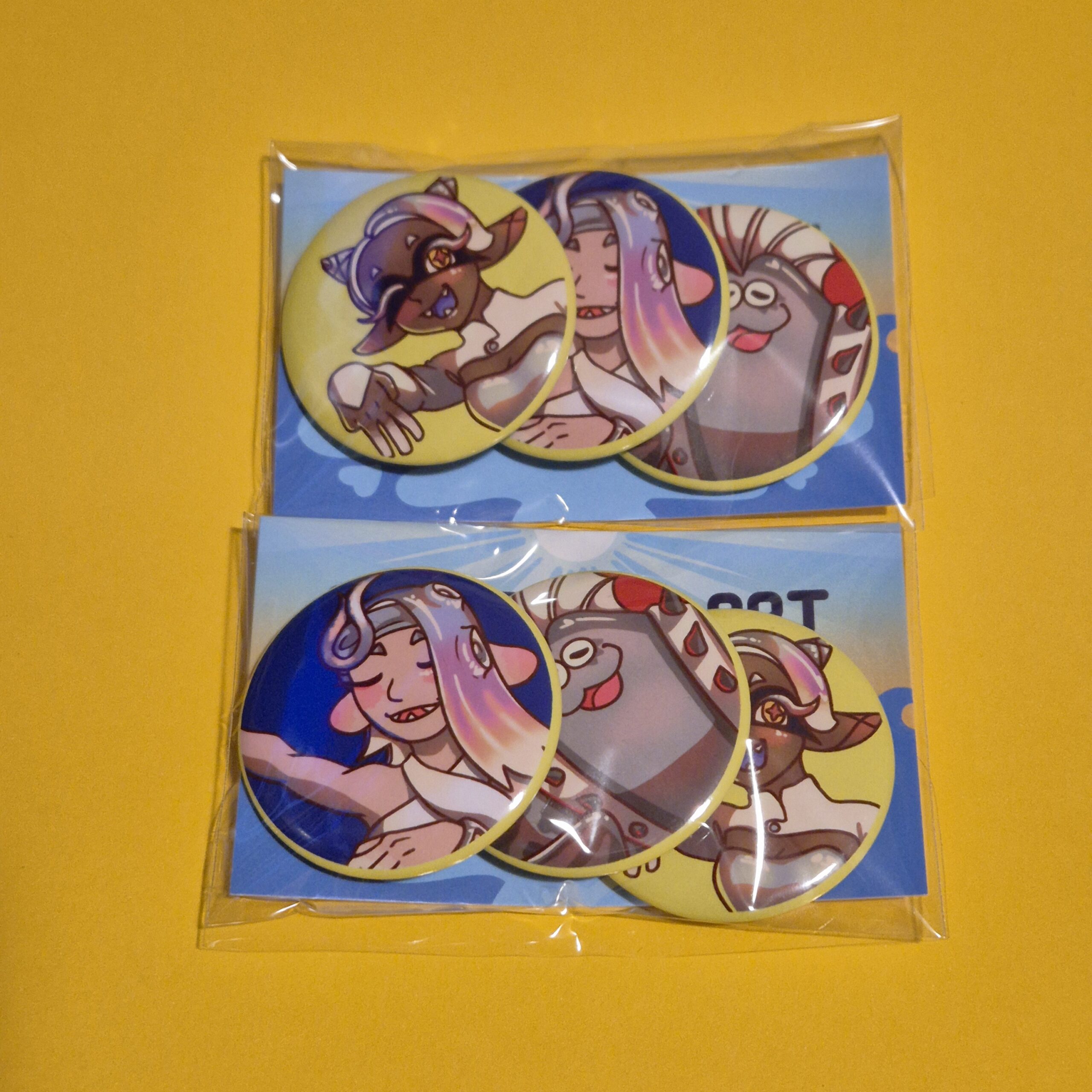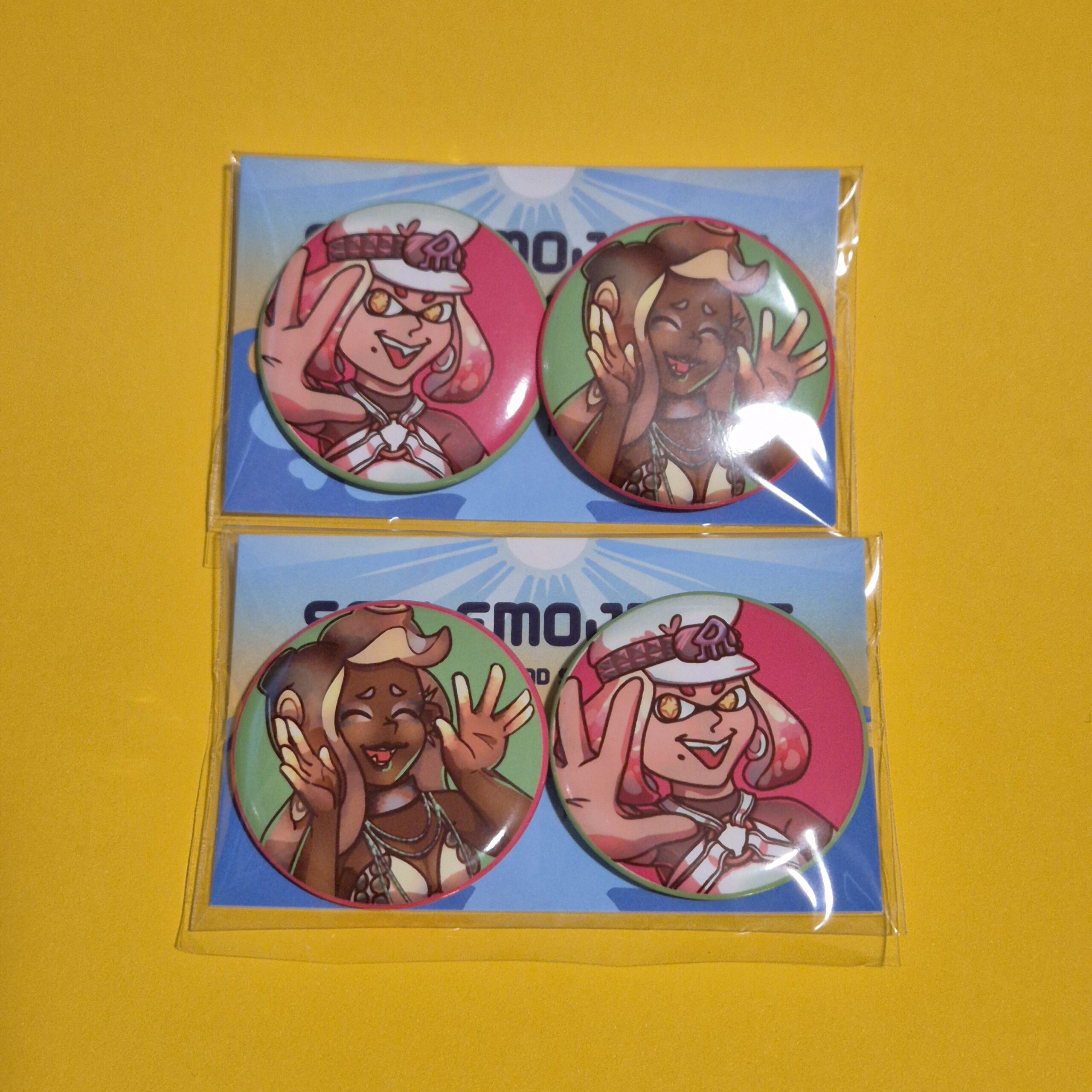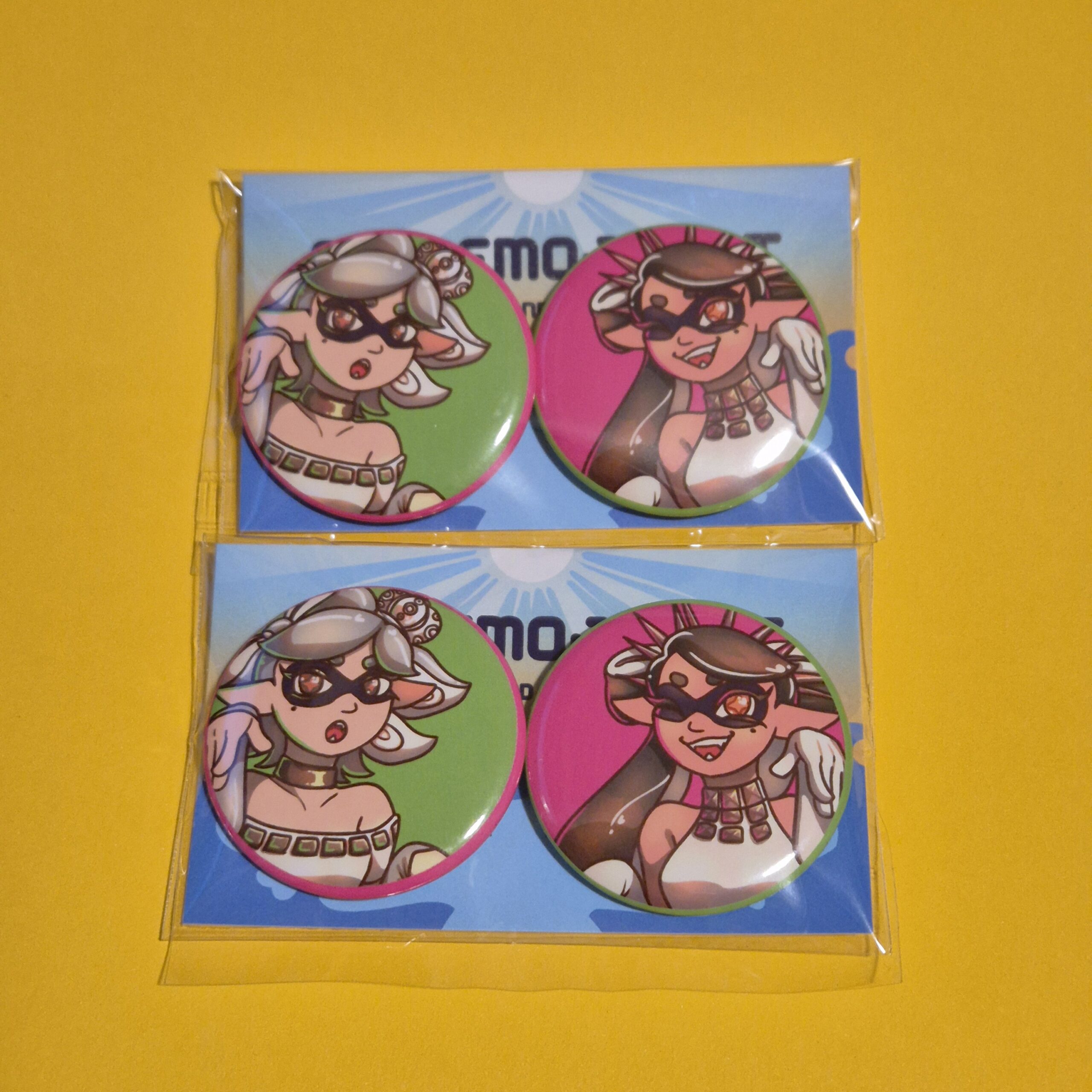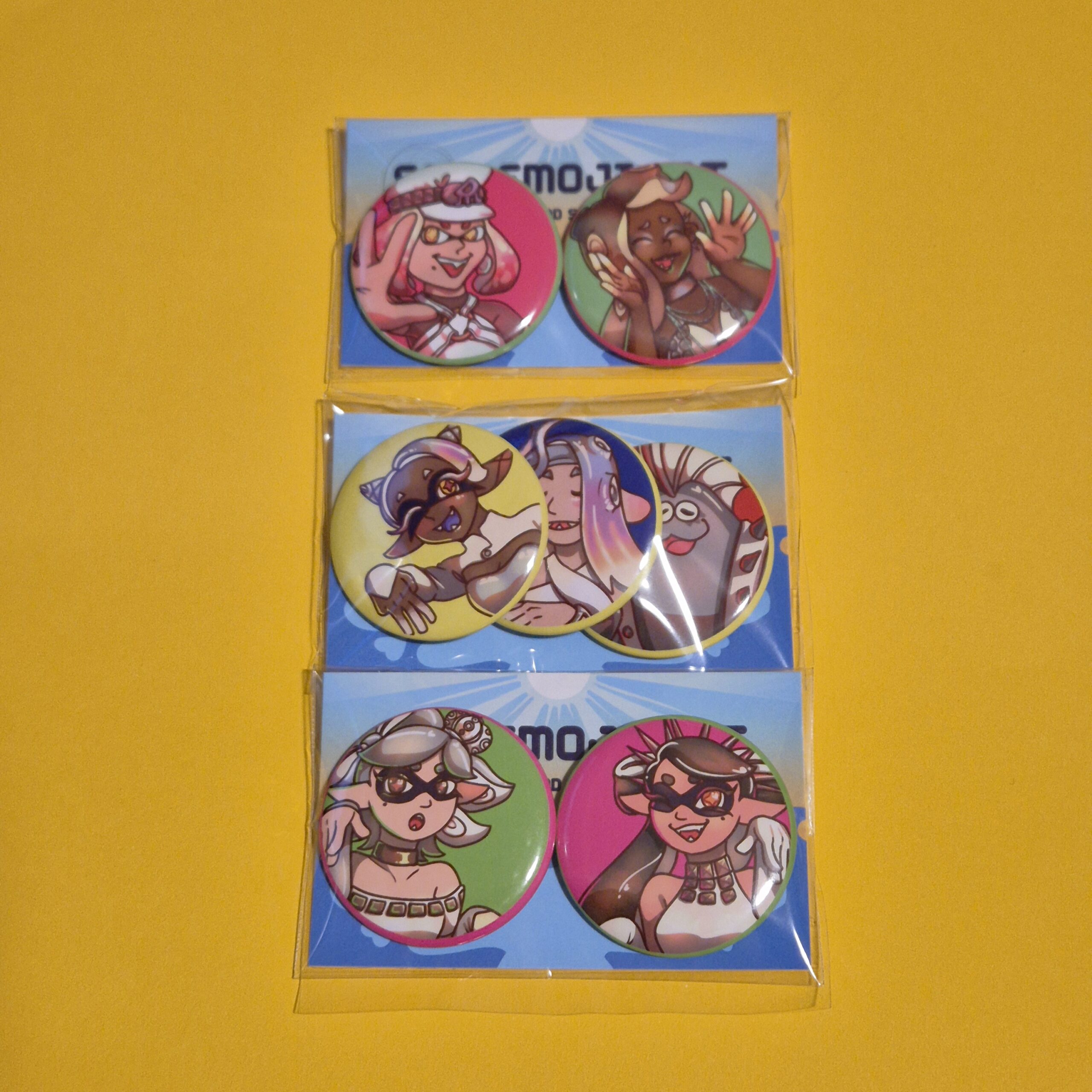 Badges featuring the idol groups from Splatoon!