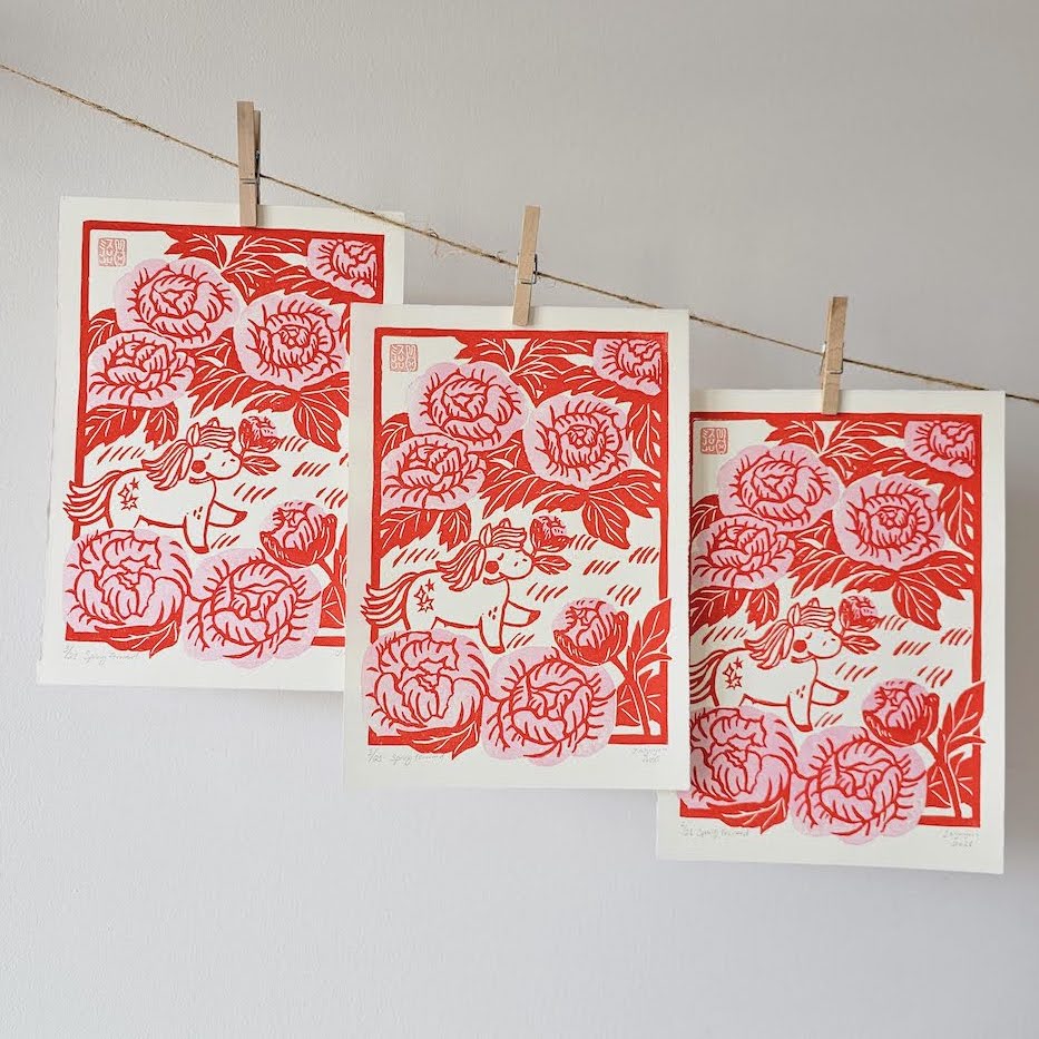 ✿ Limited edition of 21 – A4 sized lino print