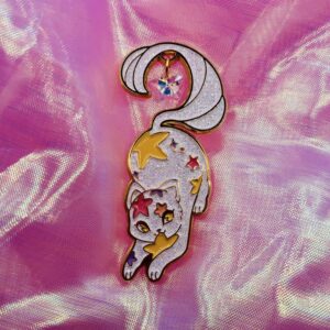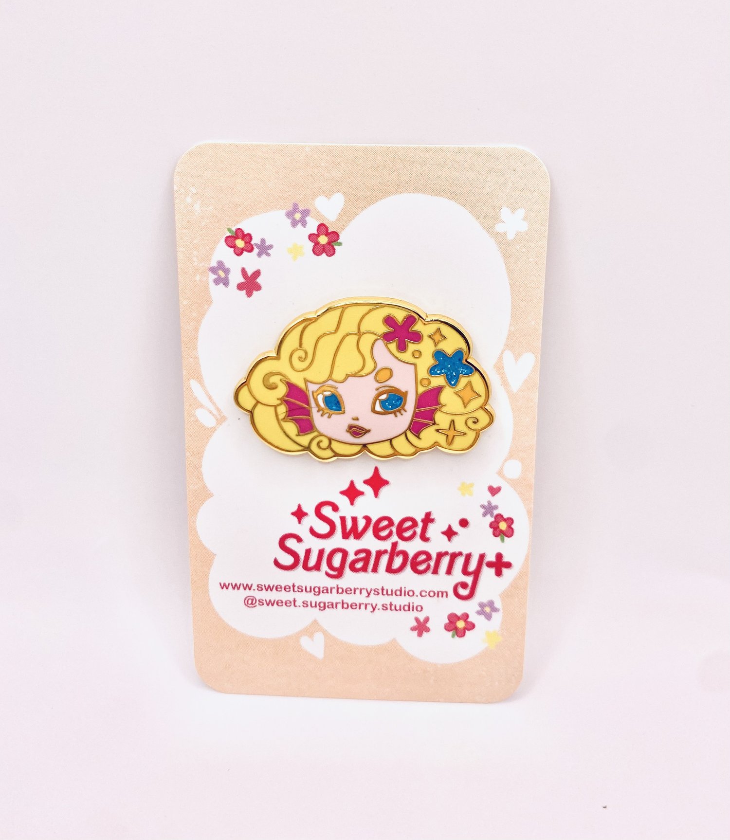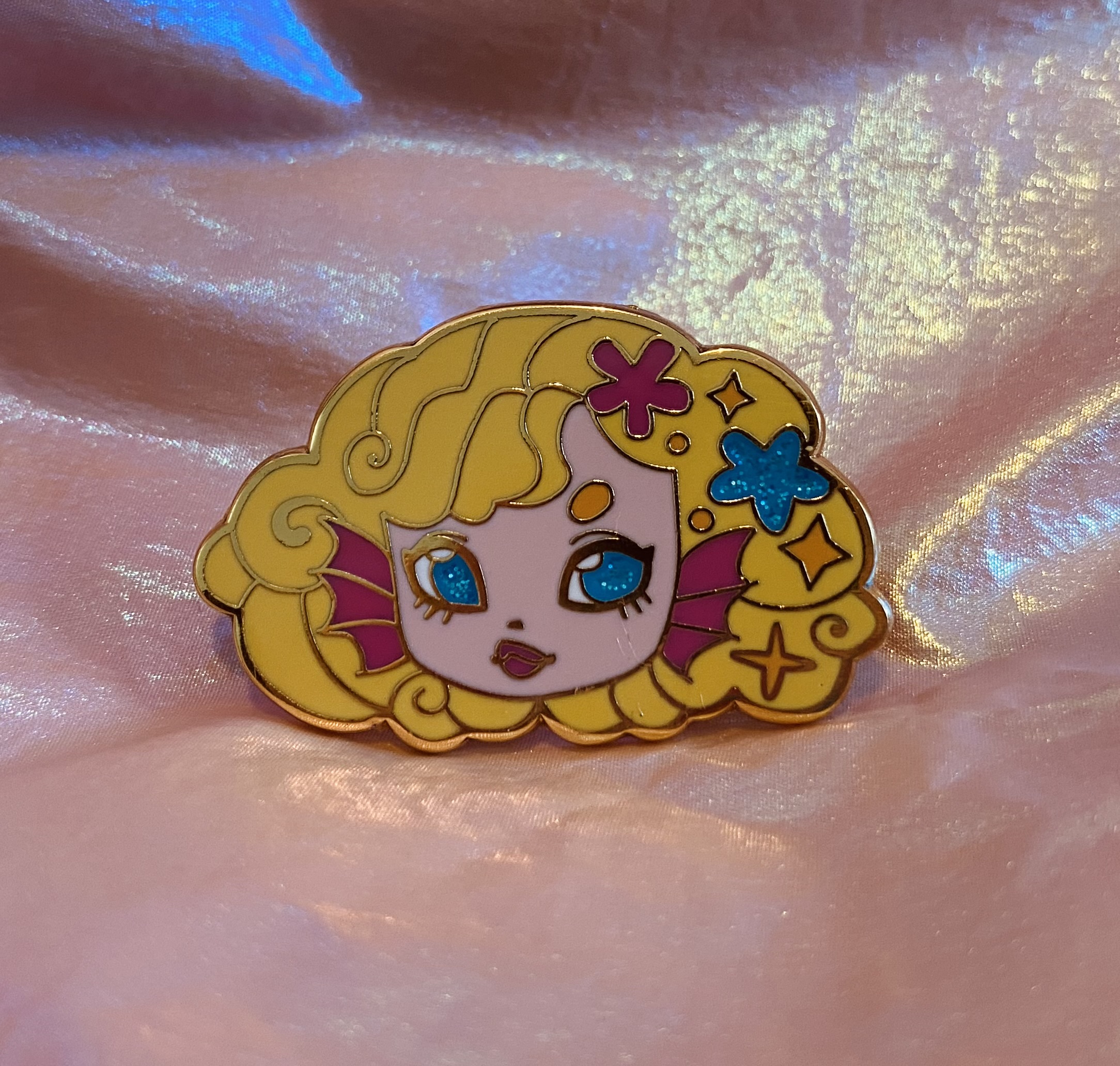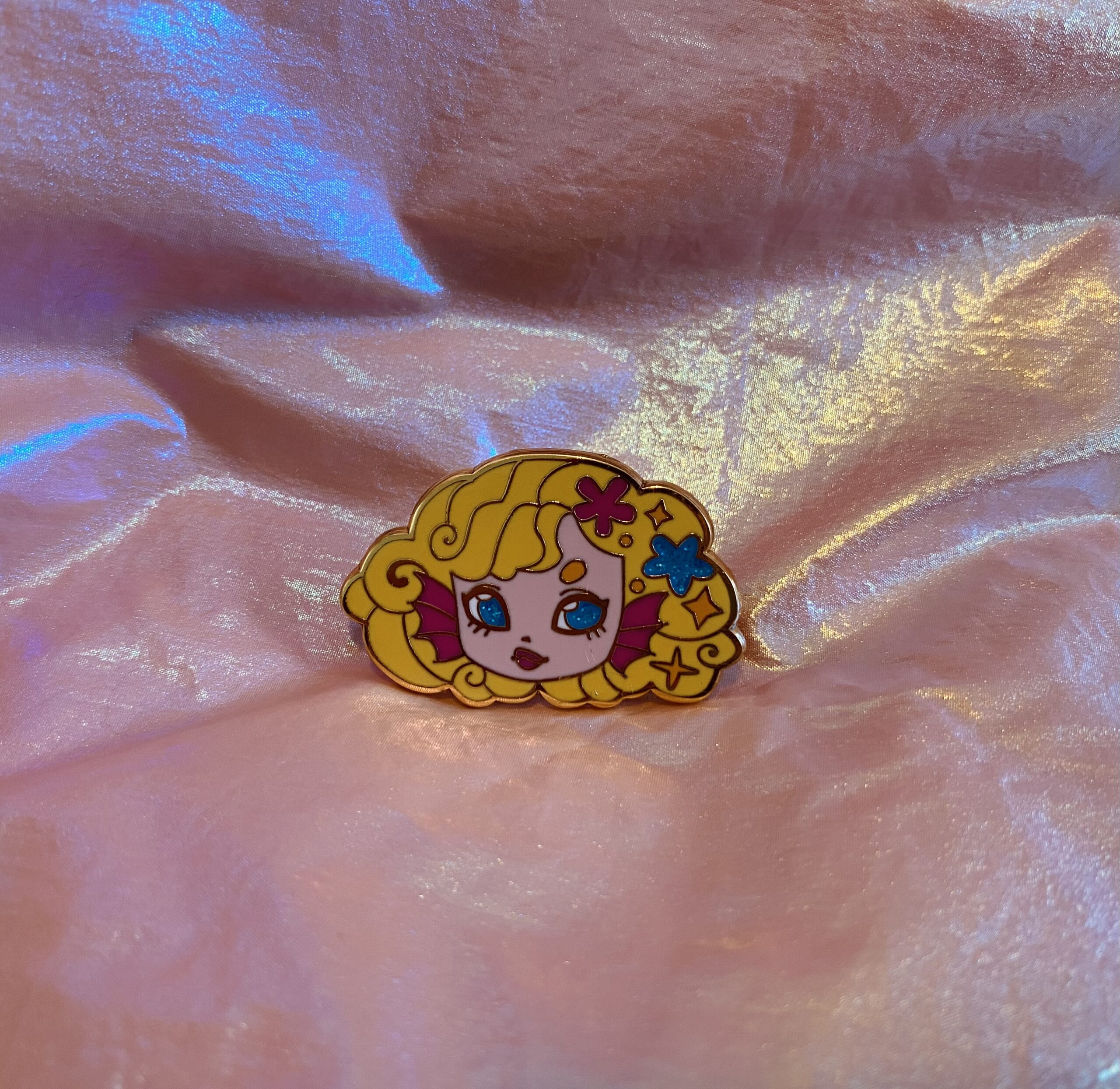 Bright colors to bring a glittery joy to hot summer outfits. Enamel pin with glitter highlights and a double backing.