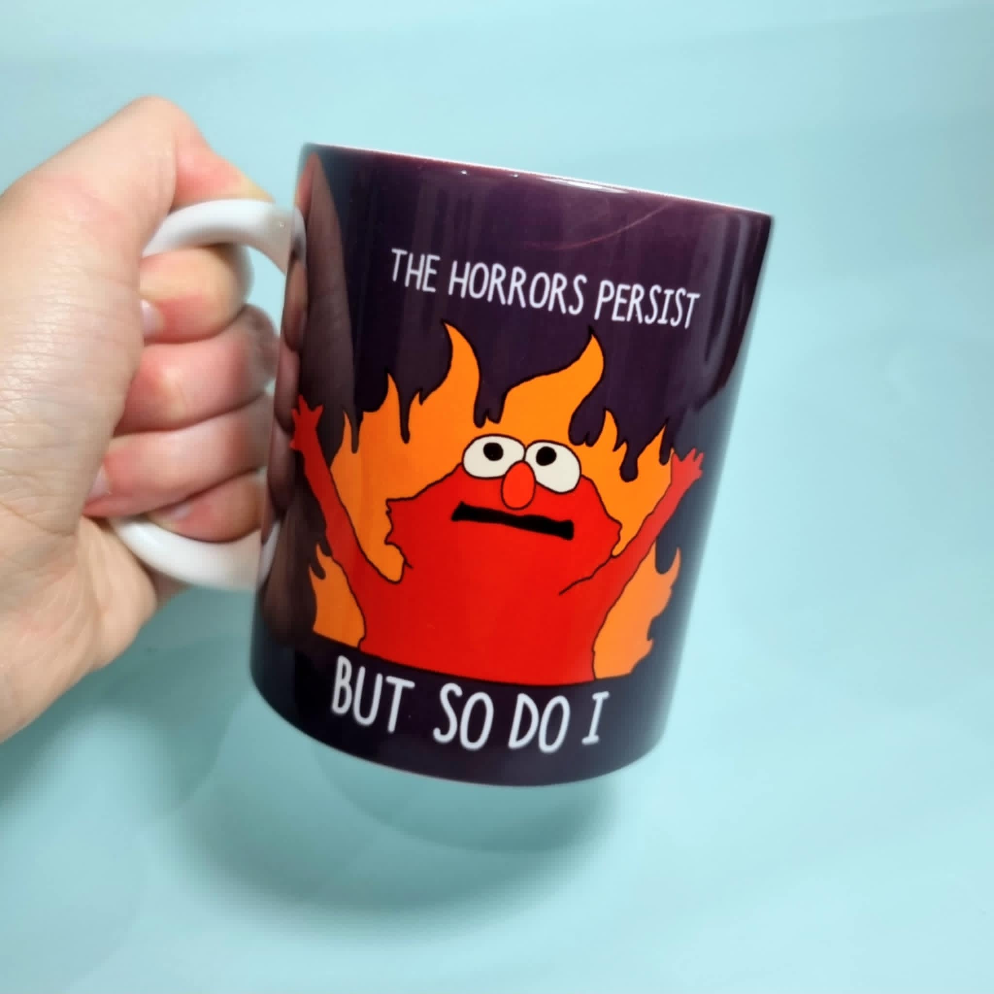 Are you down and out? Can’t afford eggs? Feel like the whole world’s on fire??? It’s okay, HELL-MO’s here to brighten your day! This nifty little number is here to remind you that while it seems like the whole world is collapsing around you, you have the will power and pure spite to carry on! The horrors may persist but so do you, and so does HELL-MO!