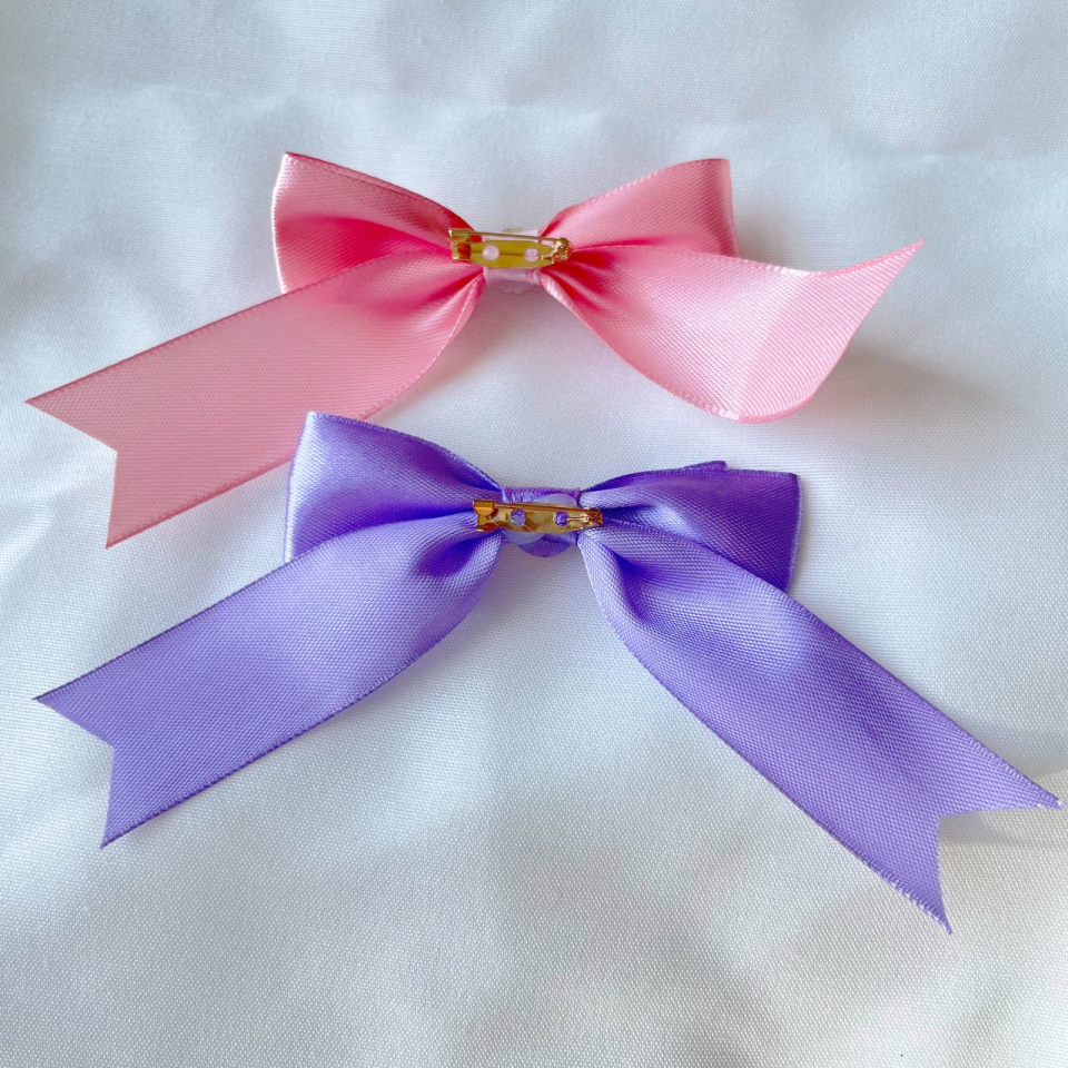 Small bow pins! Comes in purple or pink.