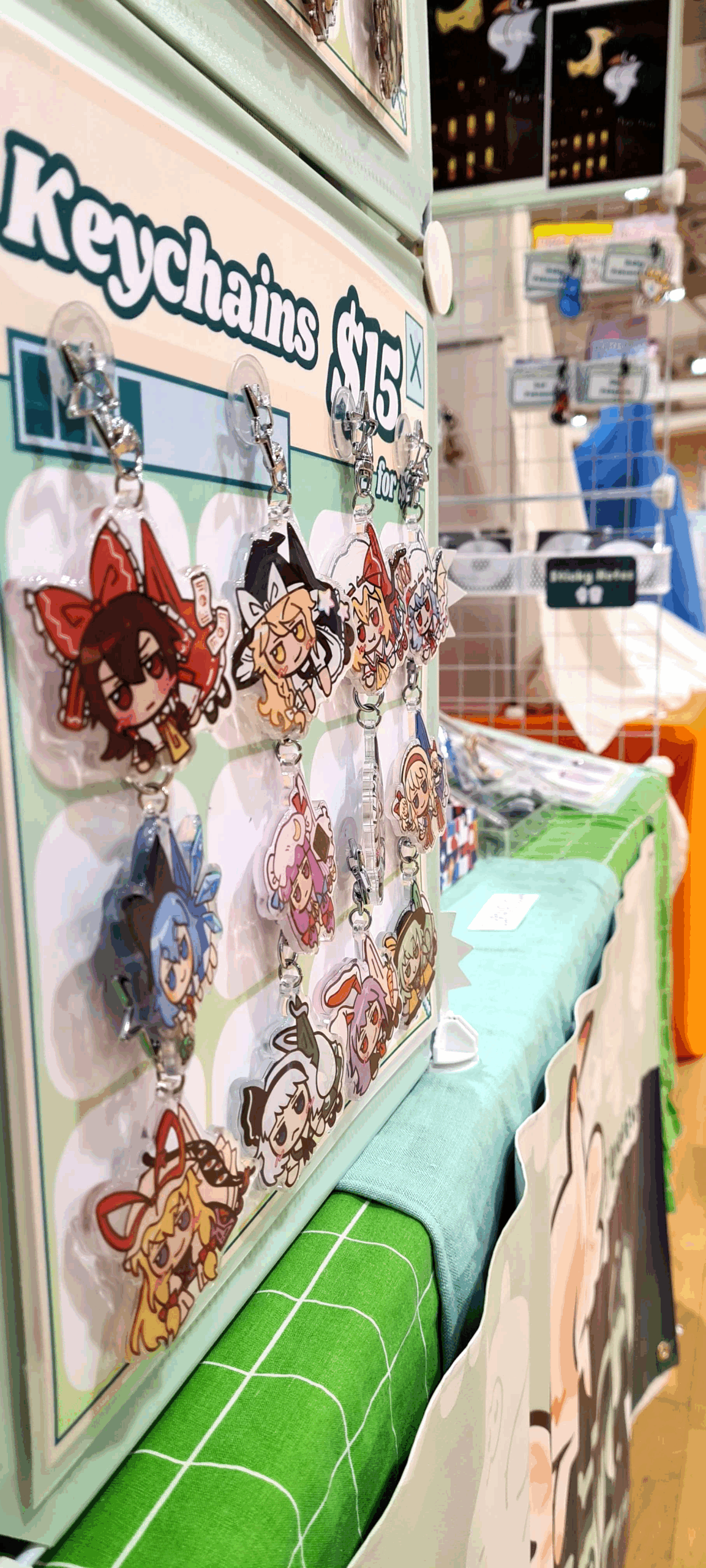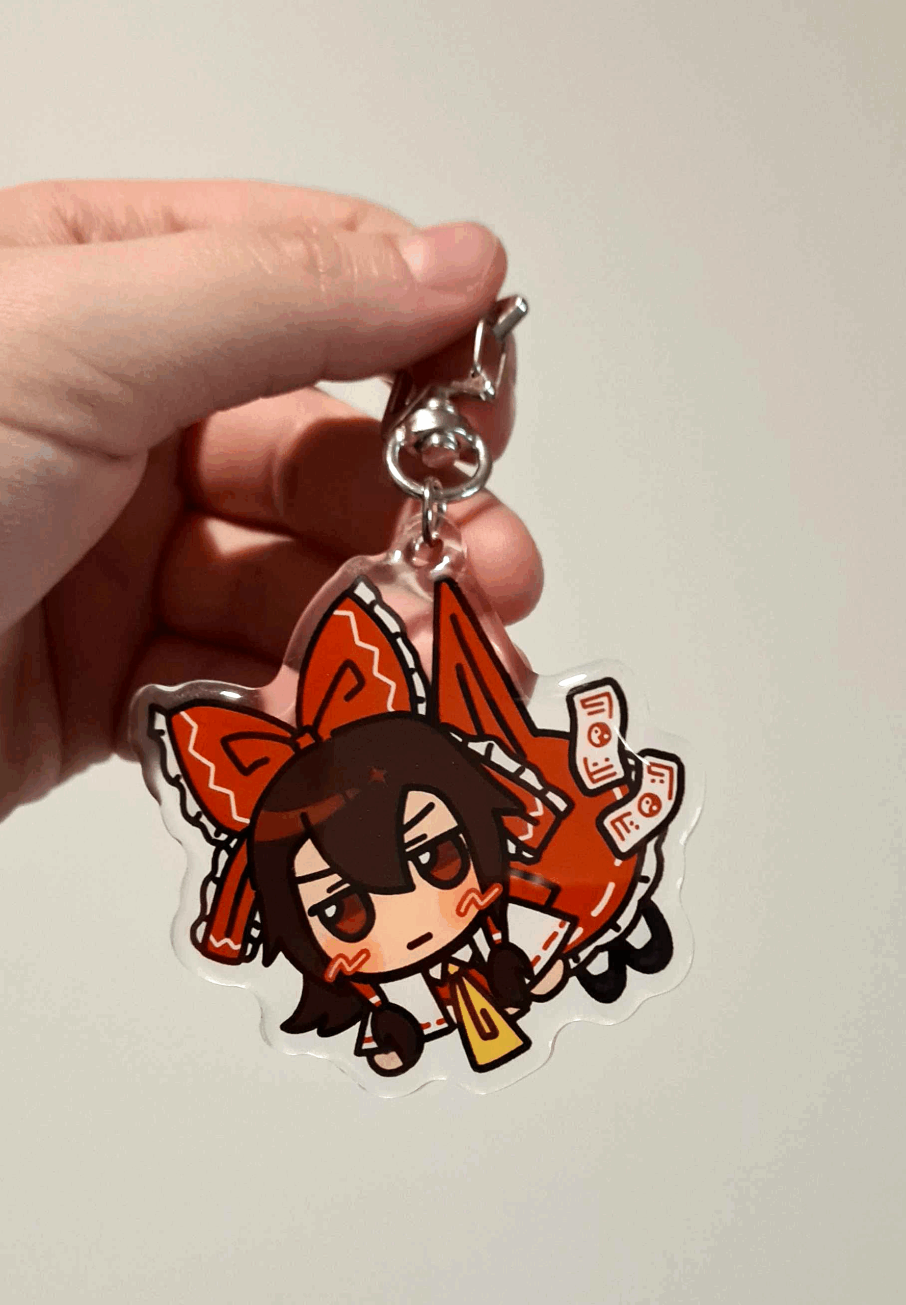 Acrylic Epoxy Keychains of various Touhou characters by beeflover1. Features Reimu, Marisa, Flandre, Remilia, Koishi & Cirno.