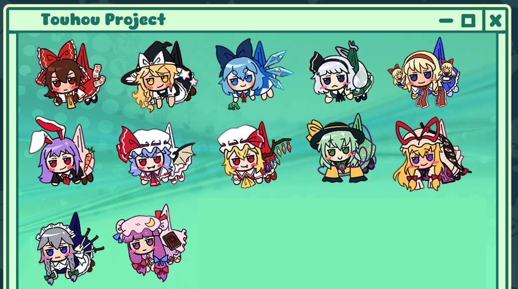 | Character | Reimu, Marisa, Flandre, Remilia, Cirno, Koishi |