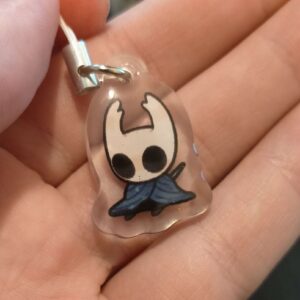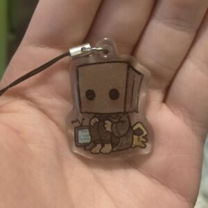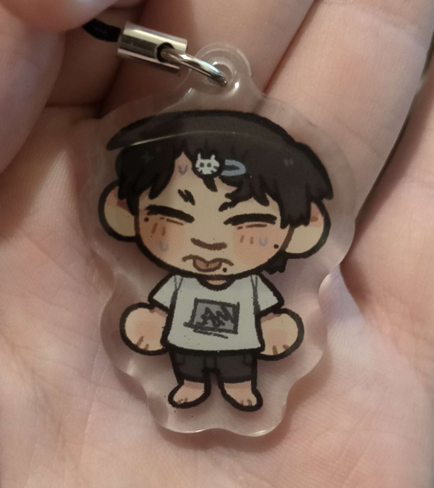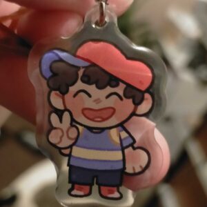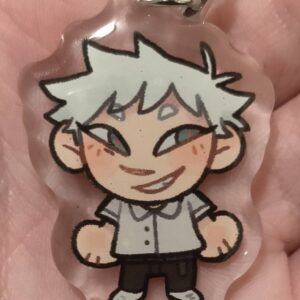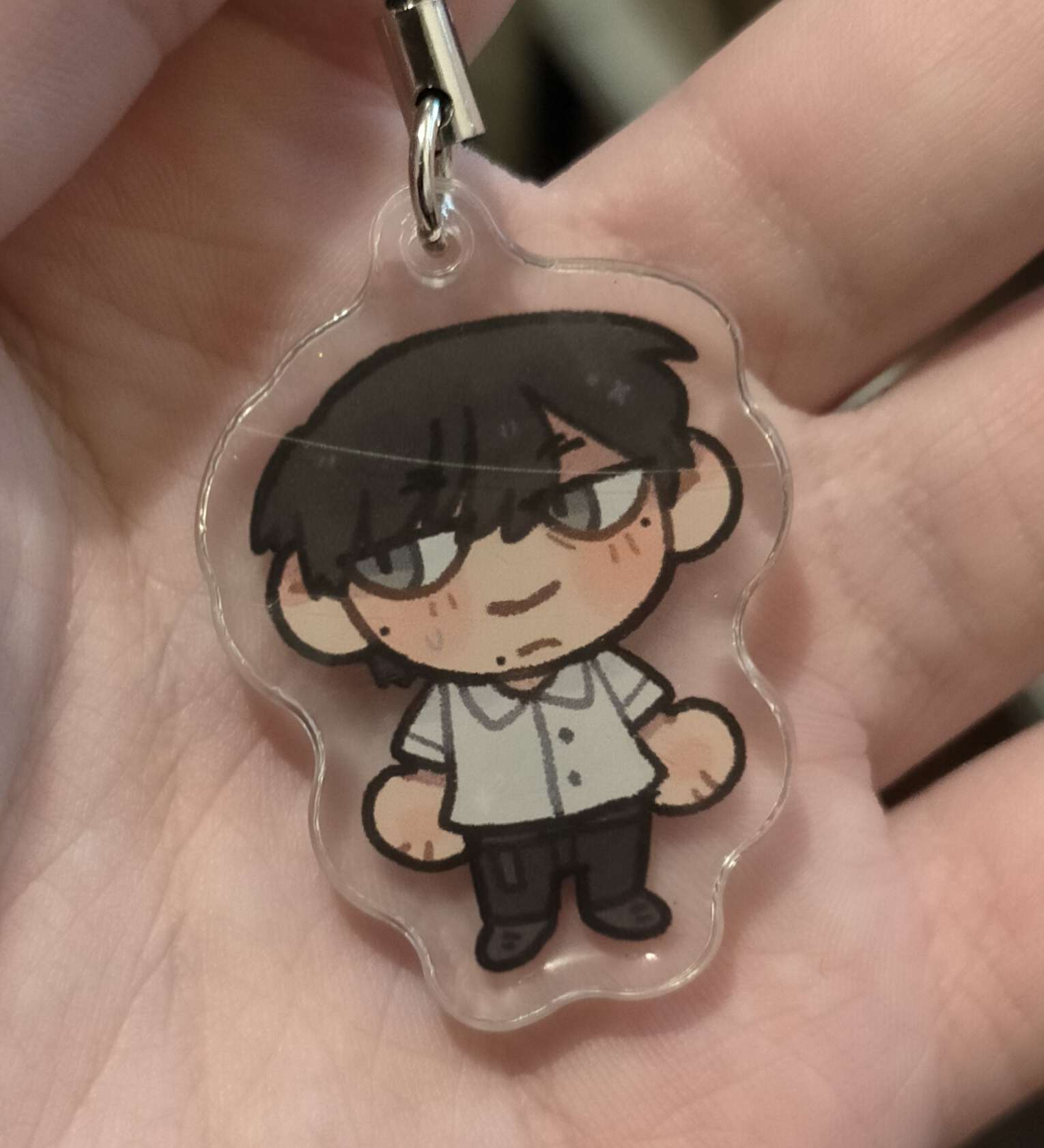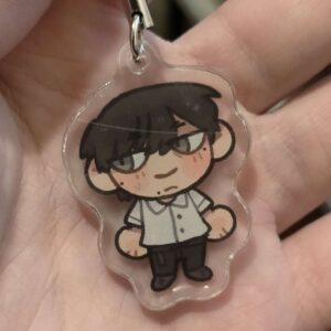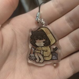1.5 inch phone charm of Yoshiki from The Summer Hikaru Died. Frontside glitter epoxy with two differing sides and a black loop attachment.
